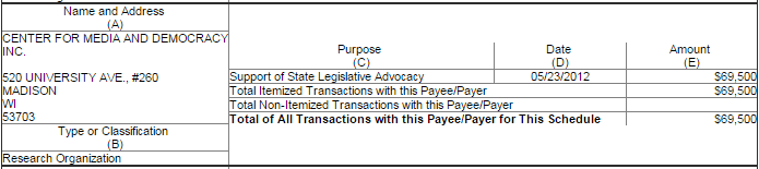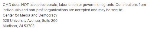 The statement that CMD would not take money from labor unions quietly disappeared. It is unknown precisely why this occurred, although the closeness to the 2010 elections cannot be ignored. A Google search of the Center’s website (PRWatch.org) shows almost no mention of Gov. Walker prior to January 1, 2011. By February of that year, CMD released a lengthy “special report” on the Governor’s relationship with a conservative foundation.