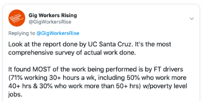 Even on the day the survey was released, Gig Workers Rising and Jobs With Justice were conducting a paid “social media push” to try to boost the respondent count.