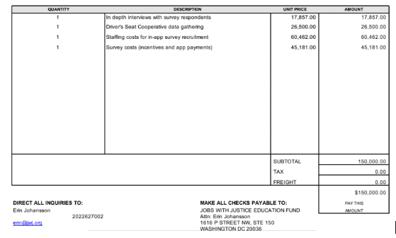 Jobs With Justice Invoice for Survey Work