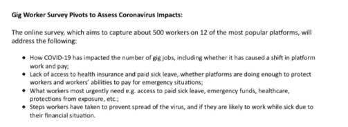 Earlier this year, the project was altered to track the impact of the COVID crisis on gig workers’ experiences. UC Santa Cruz’s Benner described the rationale in a recent interview: