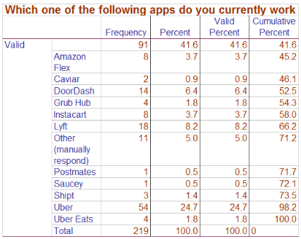 If a 500-response survey is “not representative” of gig workers’ true experiences, then a 219-response survey has no credibility in describing what it’s like to be a gig worker. That’s especially true given that the researchers’ internal data shows 40 percent of survey respondents didn’t provide the app company they “gig” for–suggesting they might not be gig workers, period. Sample sizes were abysmally low for delivery companies.