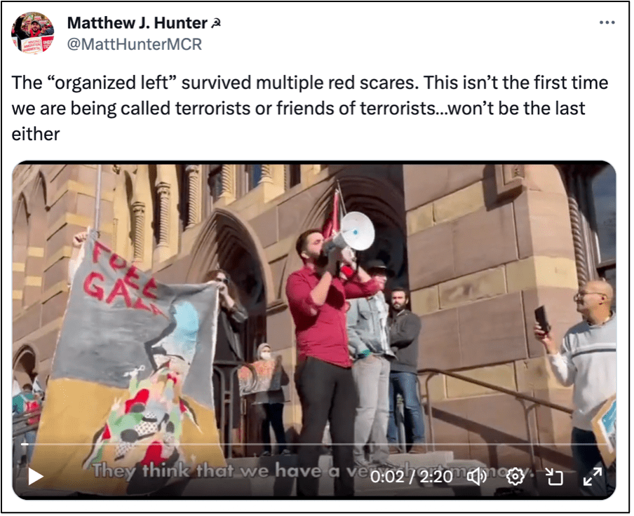 Meanwhile, Starbucks Workers United Greektown, Chicago, posted a video of the SEIU Connecticut Executive Director – Kooper Caraway – giving an impassioned speech in which he denounced media referring to the attacks as being carried out by “terrorists” and said the people of Gaza are actually “comrades.”