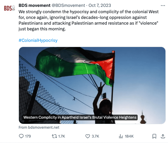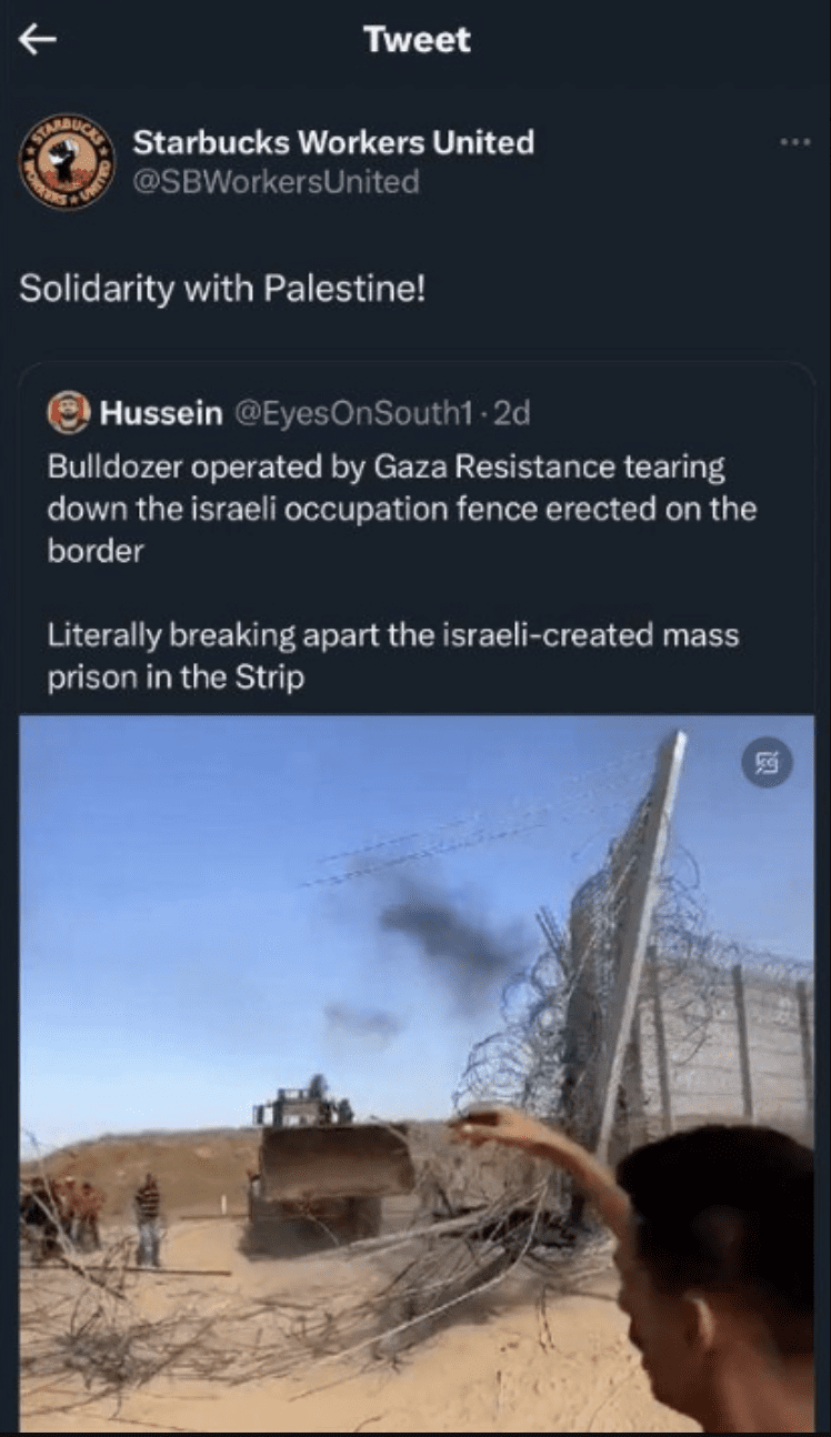 In California, John Beynon — who is listed as an officer of SEIU Local 1983 on the petition — retweeted accounts accusing Israel of genocide and has even re-posted a BDS account that called Hamas terrorists the “armed resistance.”