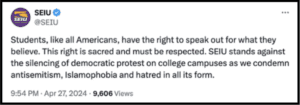 The SEIU has decided to inject itself into the Israel debate once again by issuing a statement supporting the protests against Israel currently happening across the country, specifically on college campuses.
