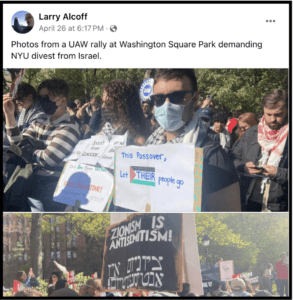 Meanwhile, high-profile SEIU Campaign Director Larry Alcoff – whose controversial history was explored by the Washington Free Beacon – has seemingly continued to attend anti-Israel protests, even posting a sign on Facebook that read, “Zionism is anti-Semitism.” Alcoff’s son – who has appeared at the same protests – currently boasts an X account that reads “Death to Zionism.”